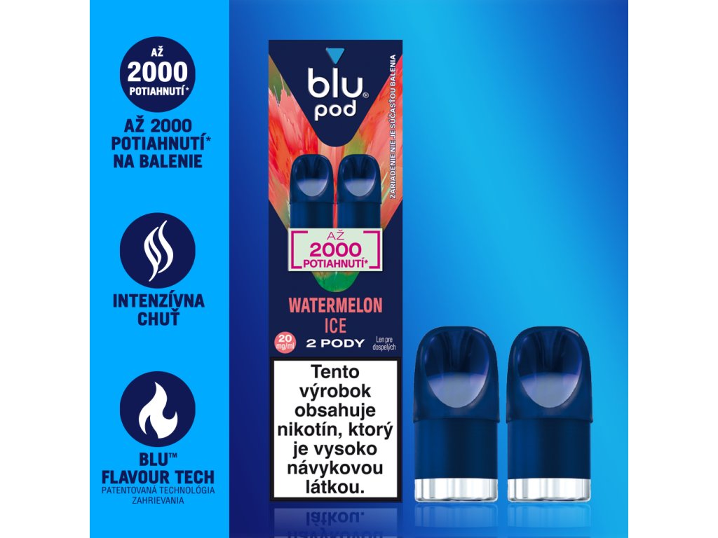 Blu Bar Pod Watermelon Ice je určený pre dospelých užívateľov nikotínu, ktorí majú radi sladkú ovocnú chuť melóna so sviežim ľadovým efektom. Moderná a pohodlná alternatíva fajčenia – bez dymu a nepríjemného zápachu.