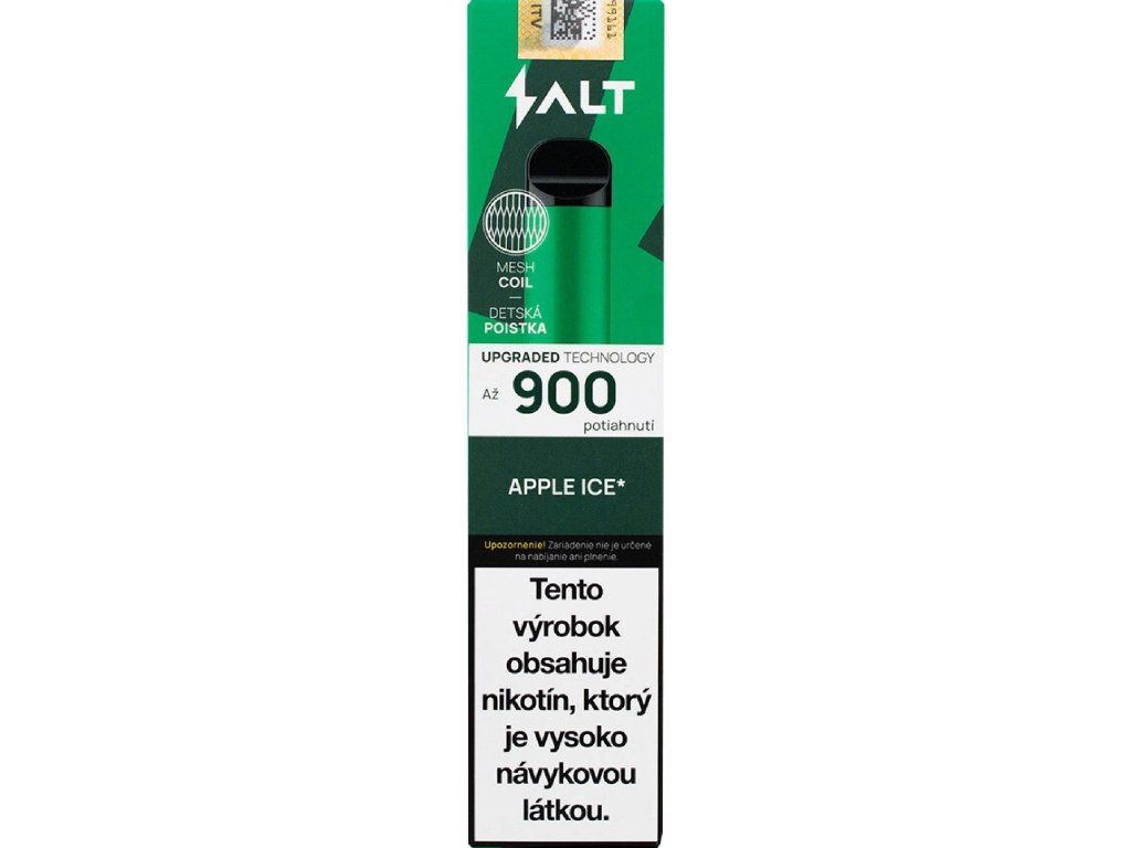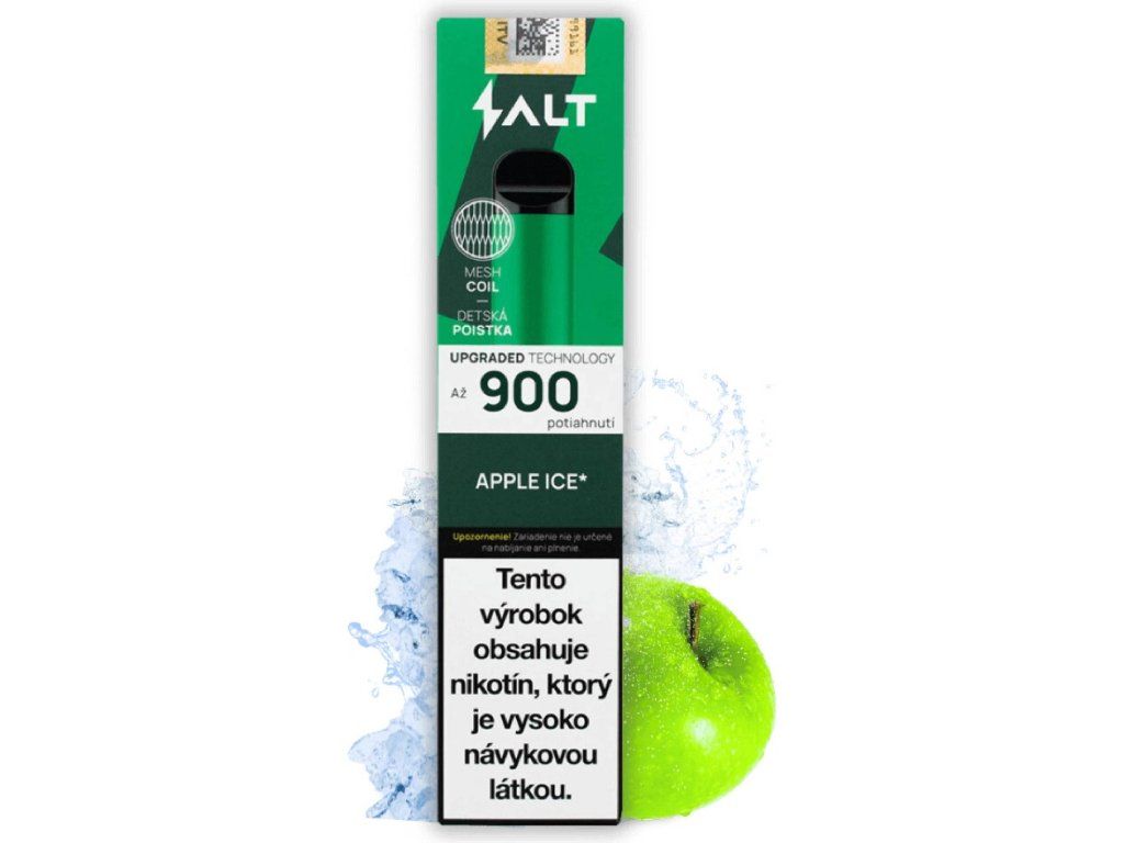 Salt Switch 900 Apple Ice 20 mg 900 poťahov je jednorazová e-cigareta určená na jednoduché používanie bez dopĺňania a bez zložitého nastavovania.