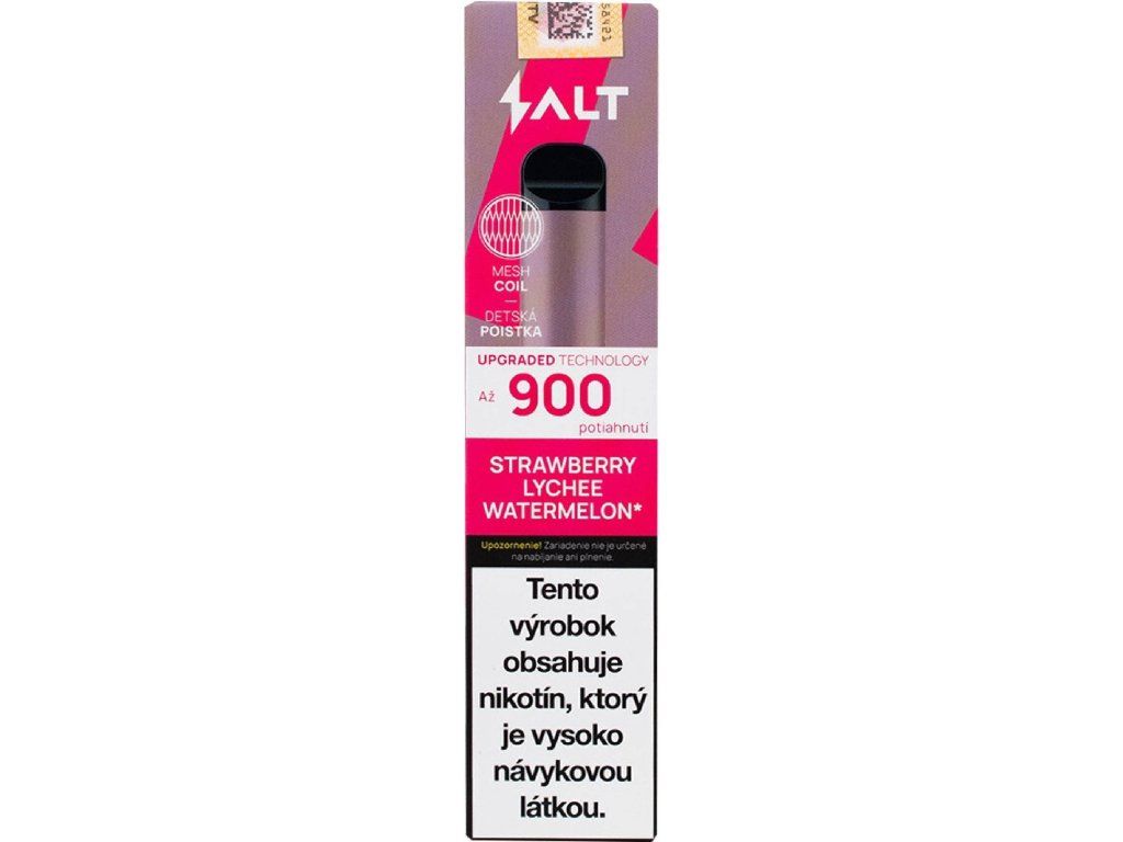 Salt Switch 900 Strawberry Lychee Watermelon 20 mg 900 poťahov je jednorazová e-cigareta určená na jednoduché používanie bez dopĺňania a bez zložitého nastavovania.