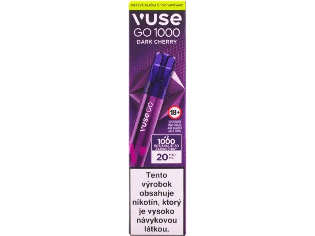 Model VUSE GO 1000 DARK CHERRY 20mg 2ml patrí medzi jednorazové e-cigarety, ktoré kombinujú kompaktné rozmery, okamžitú pripravenosť na používanie a stabilný chuťový profil.